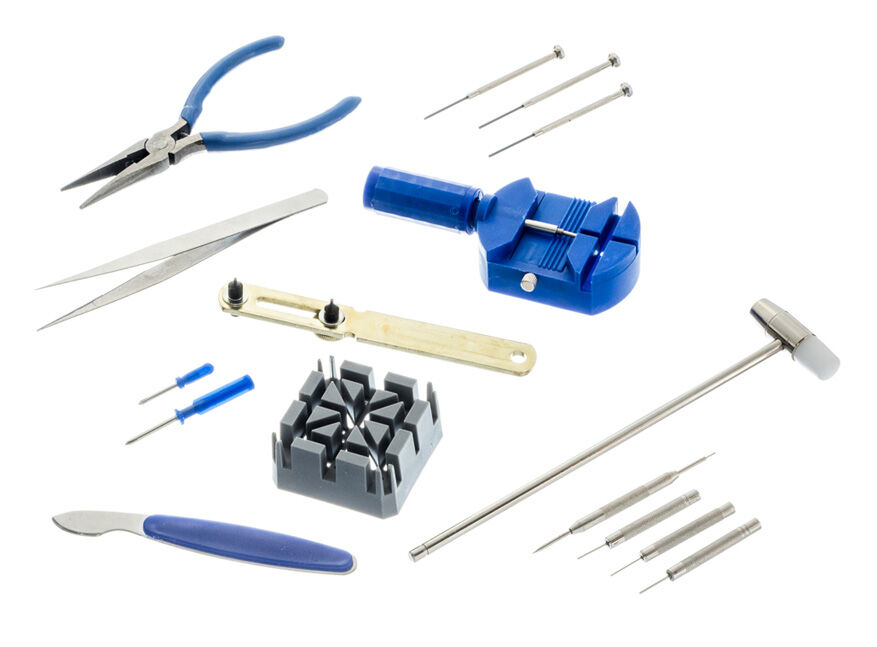 The most commonly used repair tools for changing batteries and bands on most watches—all included in one quality set.