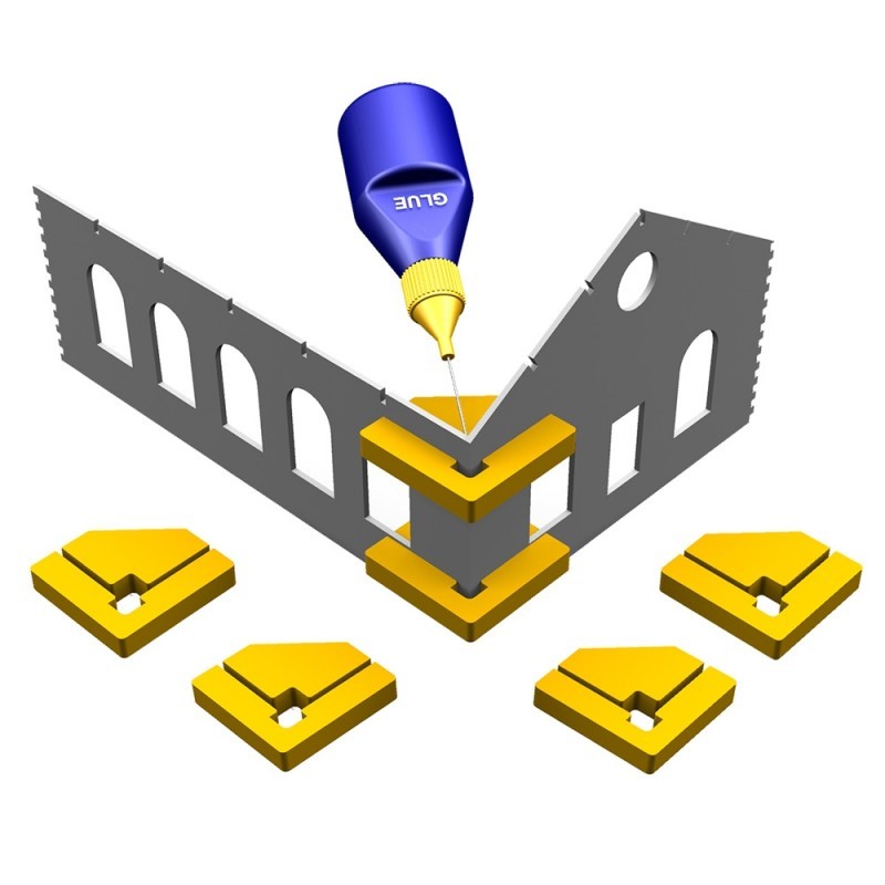 The snap and glue set squares hold the two pieces of plastic in place and allow you to glue them at the right angle without further worry.