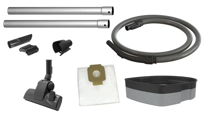 The unit comes with a large foot switch for easy operation and high quality fleece filter bags that have a filtration efficiency of 99.95%.